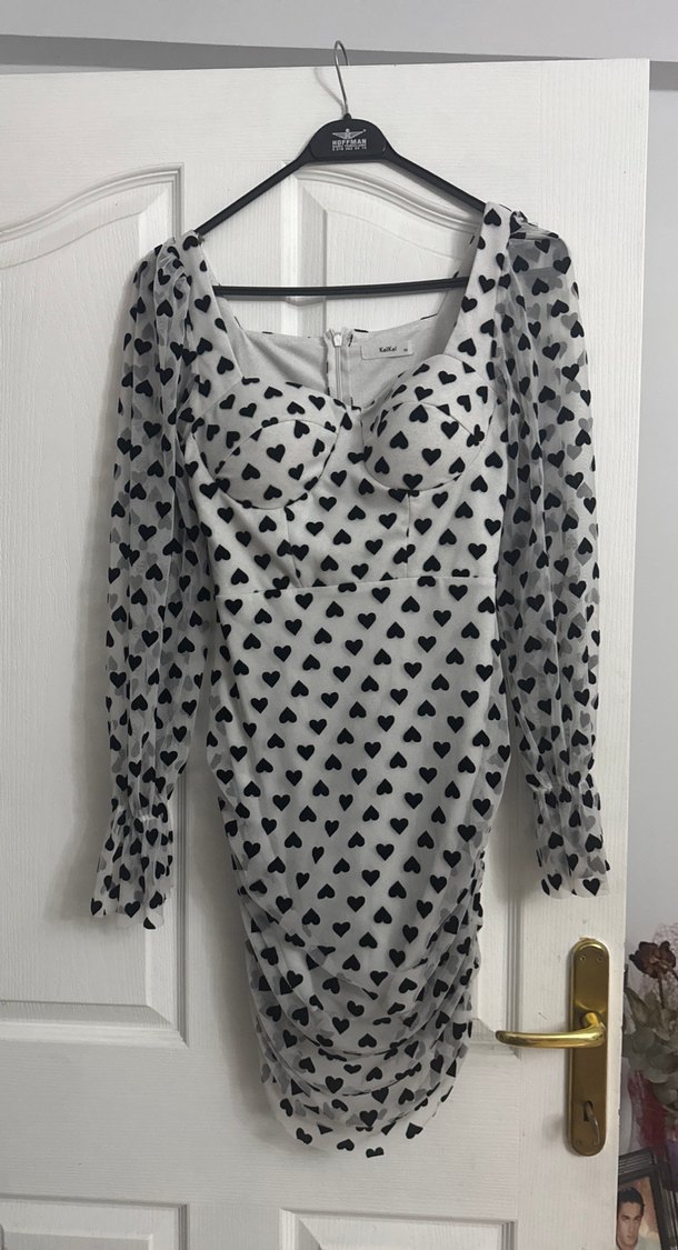 Uzun Kollu V Yaka Gri Puantiyeli Mini Elbise