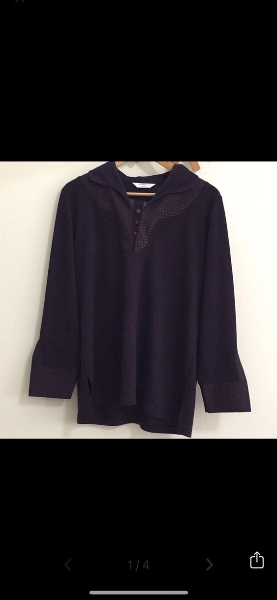 Mor renkli, uzun kollu, V yaka örgü kazak. Salaş kesimi ve minimalist gotik tarzıyla günlük kullanıma uygundur. Düz ve düğmeli detaylıdır.