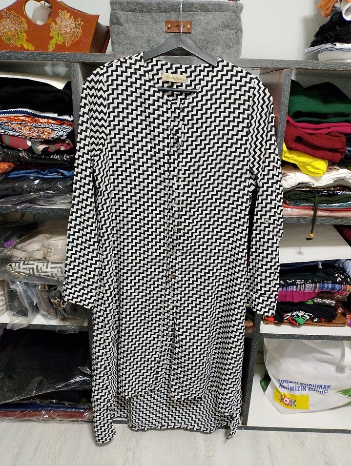 Uzun Kollu V Yaka Piliseli Kadın Tunik