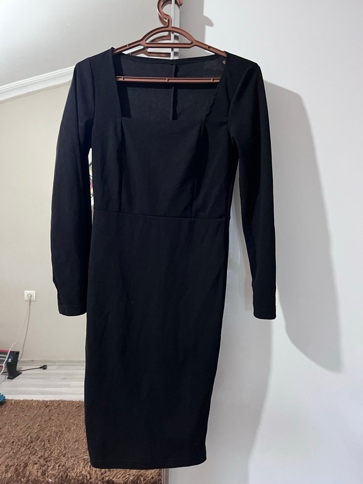 Uzun Kollu, V Yaka Siyah Elbise