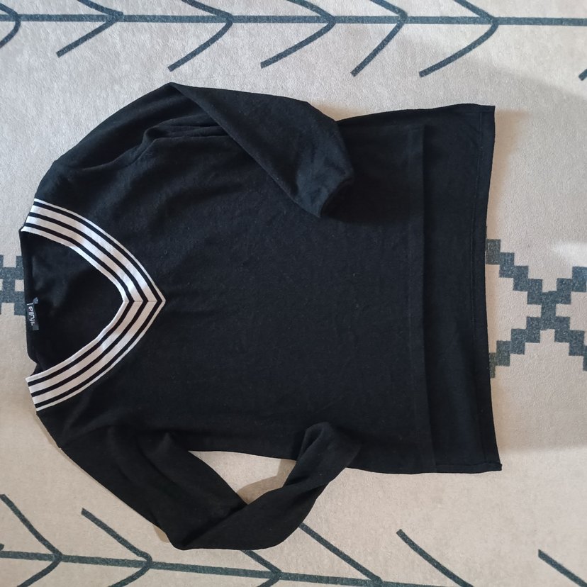 Uzun kollu, V yakalı, siyah renkli, yumuşak dokulu kazak. Günlük kullanıma ve rahat sokak stiline uygundur.