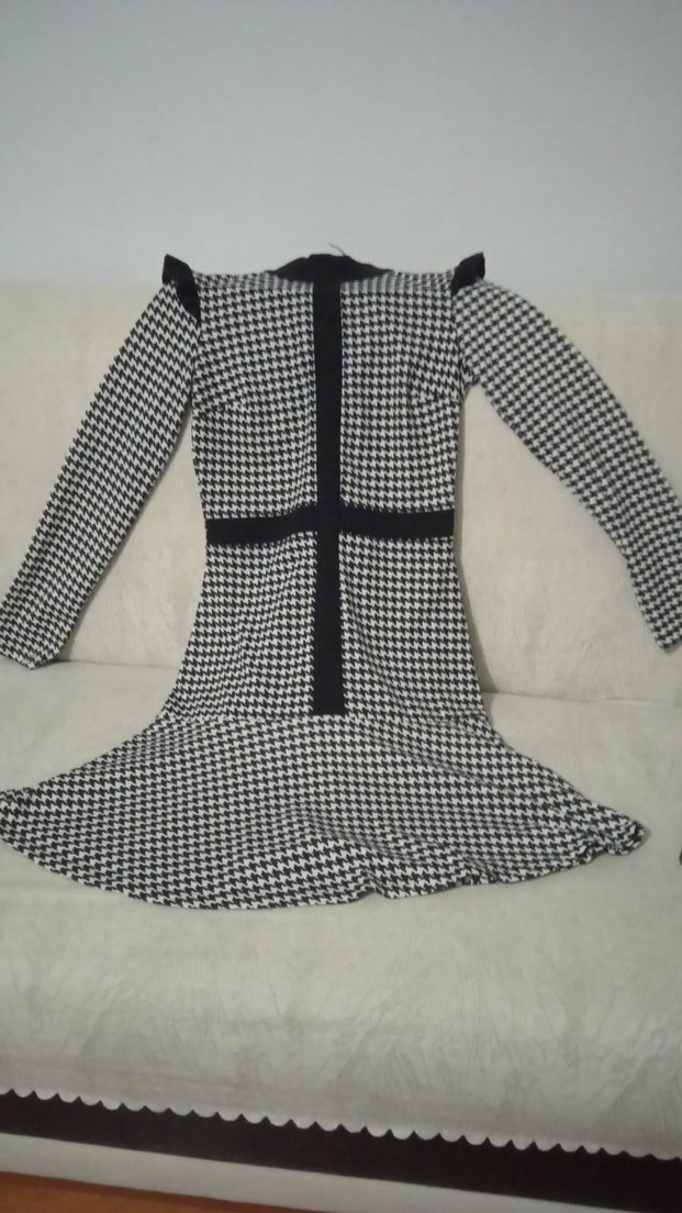 Uzun kollu, V yakalı ve düğmeli ekose desenli, fitted kesim elbise. Günlük sokak stili için uygun uzunlukta .Boyu 94 kol boyu 59 bel 36
