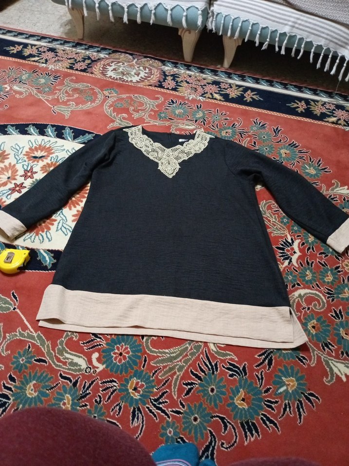 Uzun kollu, bohem tunik. Yuvarlak yaka dantel ve nakış detaylı, zıt renkte etek ucu ile midi boyda, rahat ve günlük kullanıma uygun.gogus 55.56 cm boy 82 cm ölçülerinde tunik tertemiz sorunsuz