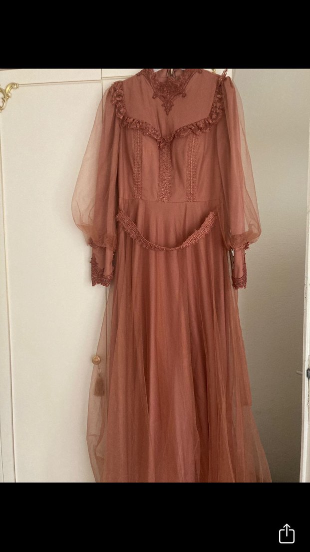 Uzun Kollu Vintage Bej Drapeli Elbise