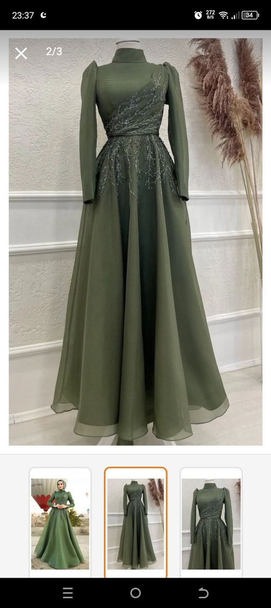 Uzun Kollu Yakalı Kadın tesettur Abiye Elbise sal dahil
