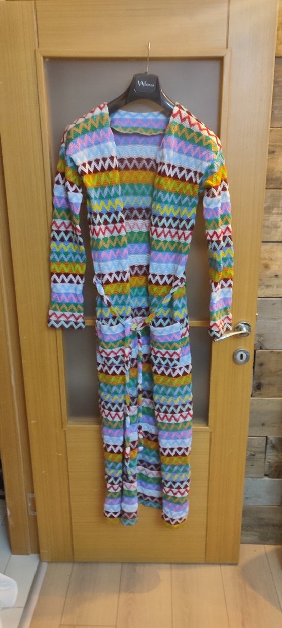 Renkli tie-dye desenli uzun kollu yelek. boyu 140 cm