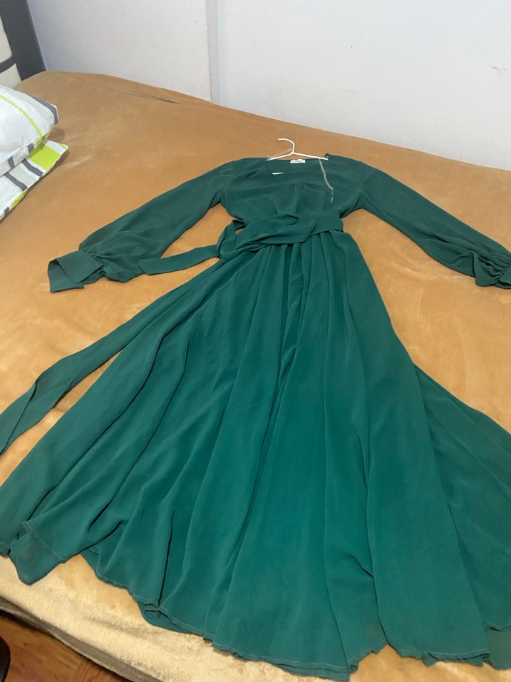 Uzun Kollu Yeşil Bohem Kadın Elbise