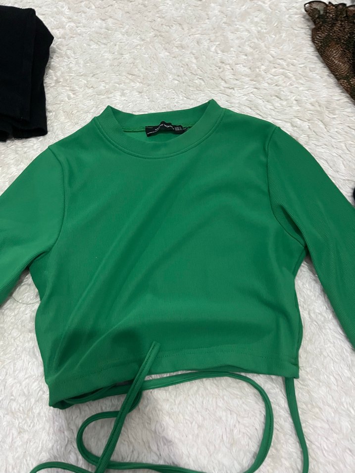 Uzun Kollu Yeşil Crop Top