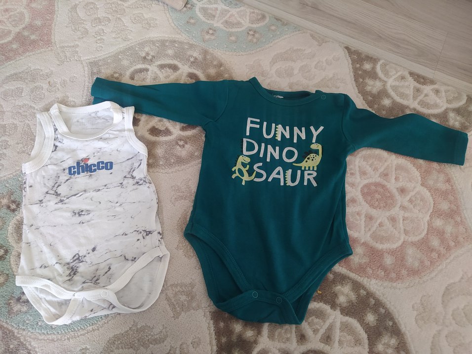 Yumuşak ve sıcak kumaştan, düğmeli, uzun kollu, yeşil renkli, 'Funny Dino Saur' baskılı bebek body. Crew neck kesime sahip. iki adet zıbın
