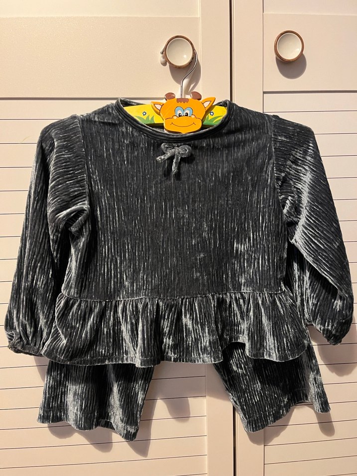 Uzun kollu, bol kesim ve fırfır detaylı kız elbisesi. Yuvarlak yaka ve desenli yumuşak sentetik kumaştan yapılmıştır.