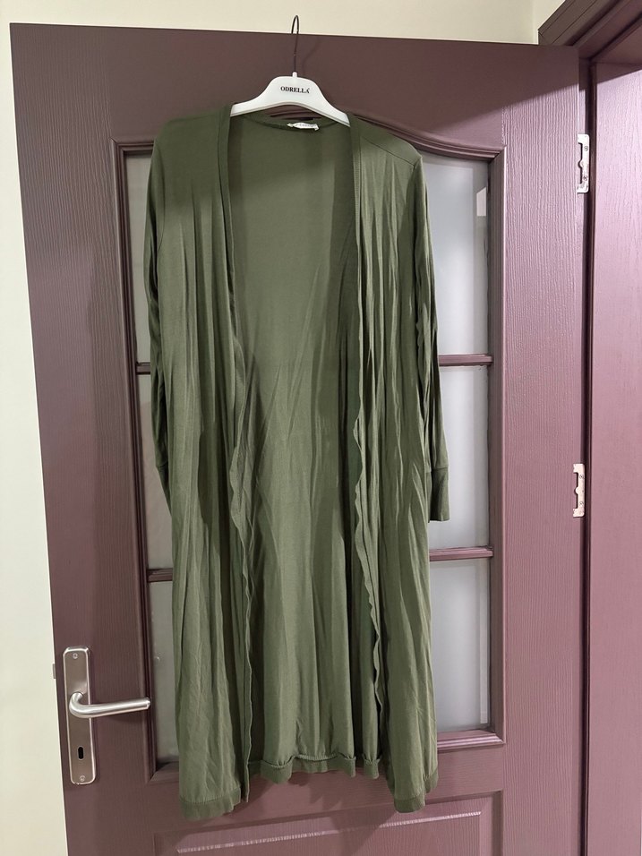 Uzun Kollu Yeşil Kadın Uzun Hırka