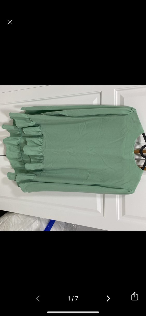 Uzun kollu, bol kesim ve uzun boy yeşil keten tunik. Minimalist tarzda fırfır detayları bulunur. Günlük rahat kullanıma uygundur.