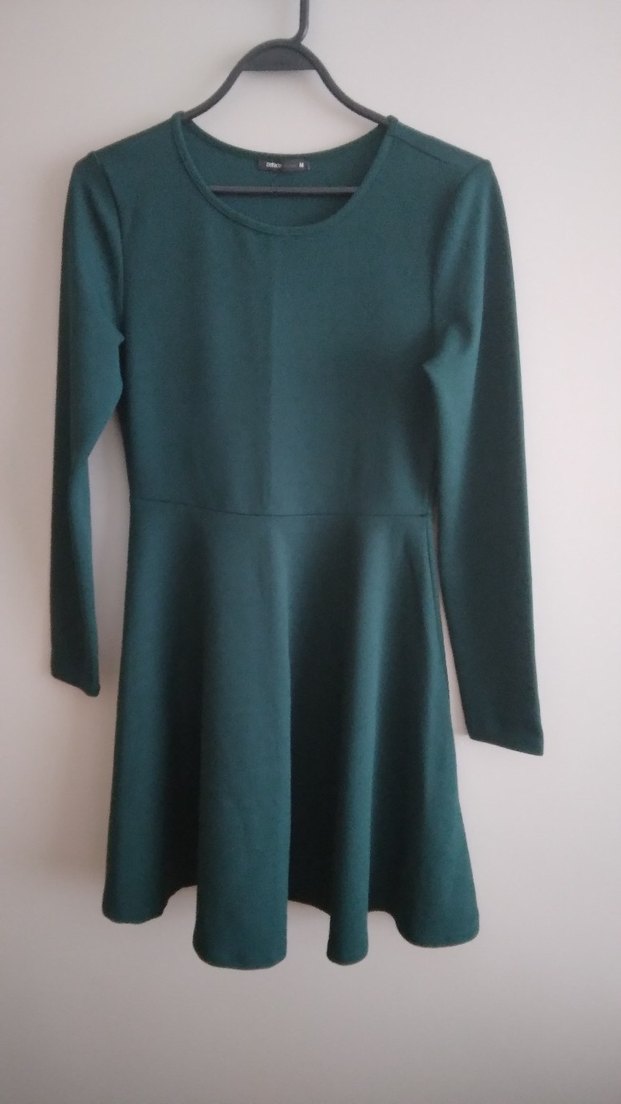 Uzun kollu, yuvarlak yakalı ve pile detaylı, yeşil midi boy, vücuda oturan elbisedir. Ofis ve günlük kullanımı için uygundur.