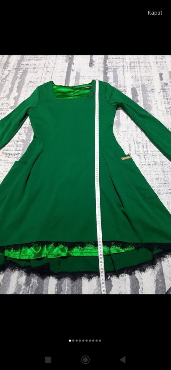 Uzun kollu, bisiklet yaka ve normal kesim yeşil midi elbise. Etek kısmında fırfır detayları bulunan gotik tarzda bir model, parti için uygundur. ceplerini soktum düz bir elbise görüntüsünde oyüzden fiyatı uygun tutuyorum
