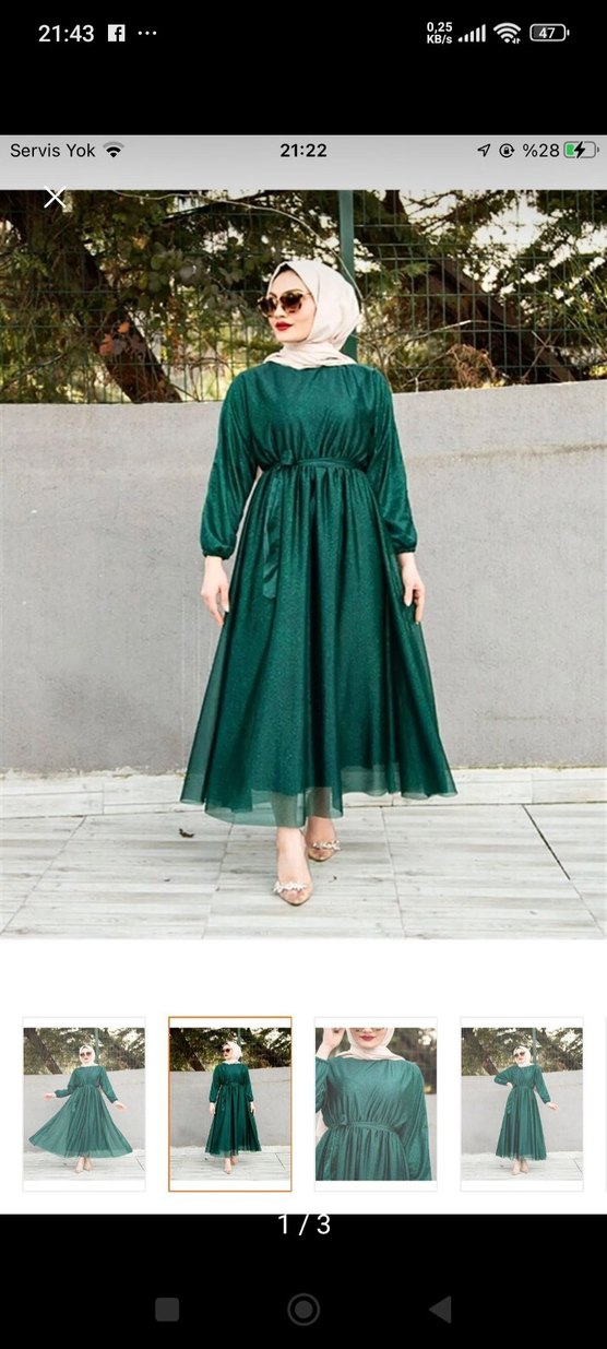 Uzun, bol kesim bu gece elbisesi, tekne yakalı ve uzun kolludur. Drapeli tasarımı ve parlak yeşil kumaşıyla çağdaş ve zarif bir görünüm sunar. ✨ 38 40 42 beden uyumlu