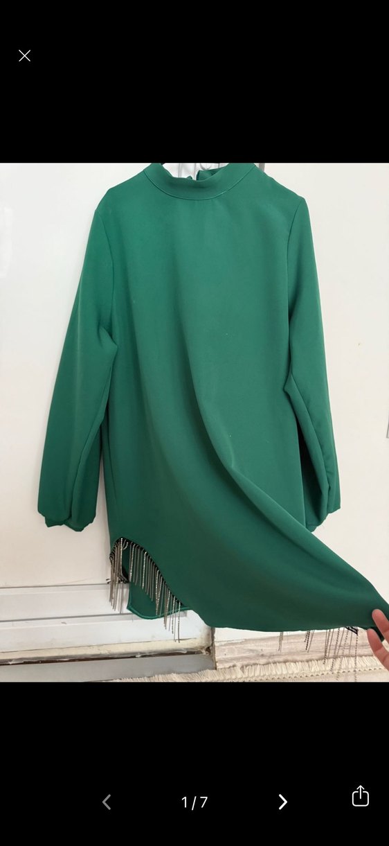 Uzun kollu, salaş kesim kadın takım ve yuvarlak yakaya sahiptir. Çok şık kusuru yok