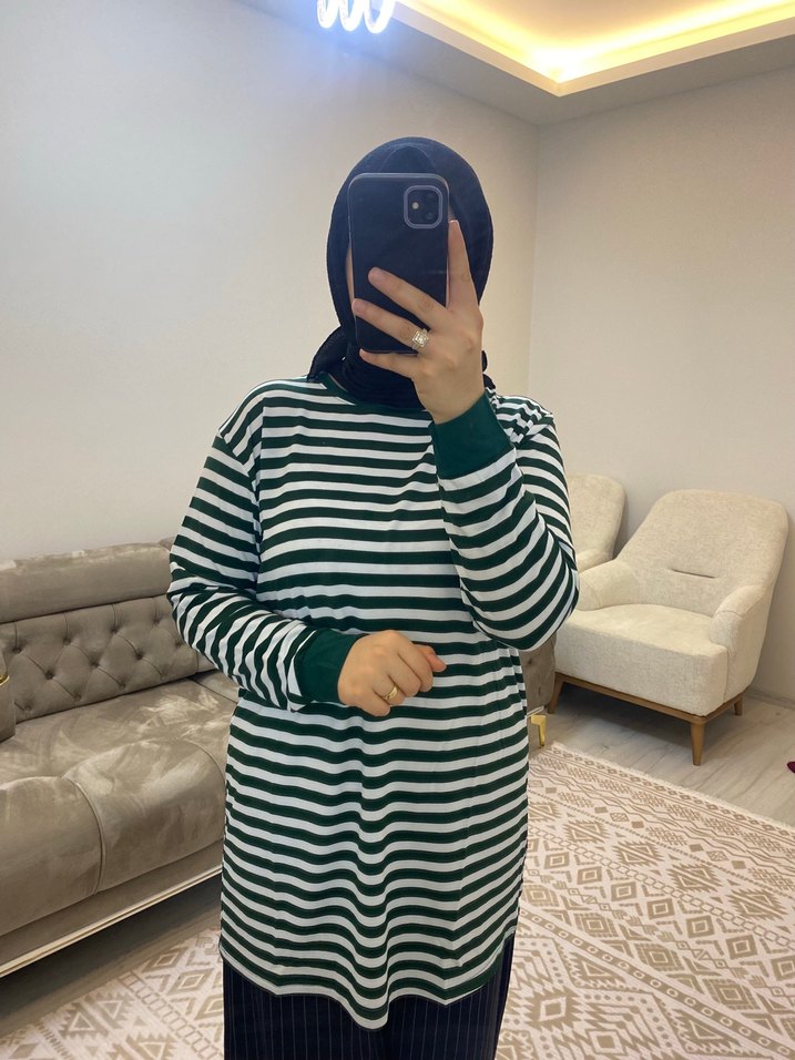 Uzun kollu ve bol kesimli bu koyu yeşil body zebra desen bulunur. Sokak stiline uygun, rahat ve sade tasarımıyla günlük kullanıma uygundur.