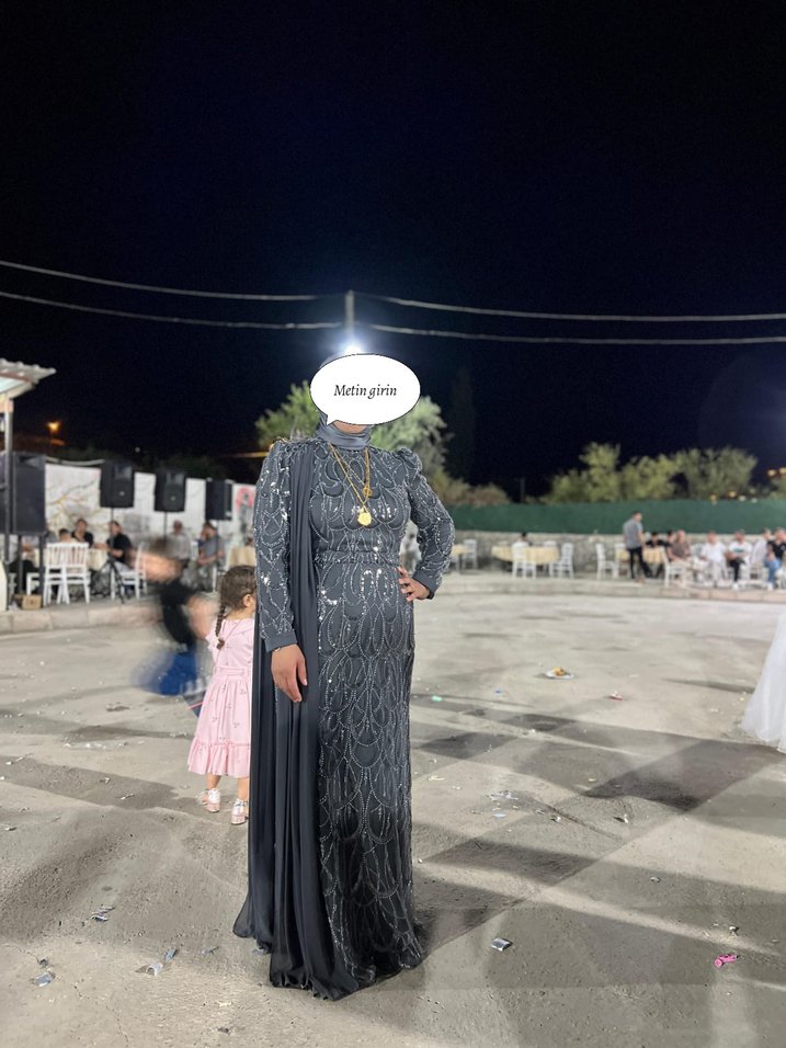 Yılan desenli, yüksek yakalı ve uzun kollu, drapeli gri uzun elbise, tarzda şık bir seçimdir.
