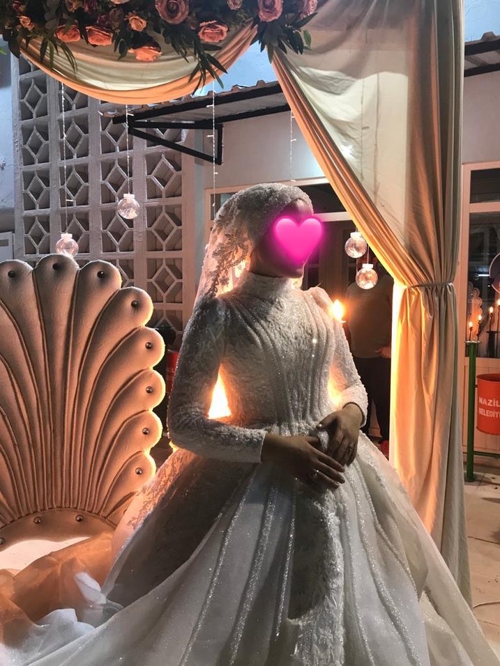 Uzun Kollu Yüksek Yakalı Beyaz Prenses Gelinlik