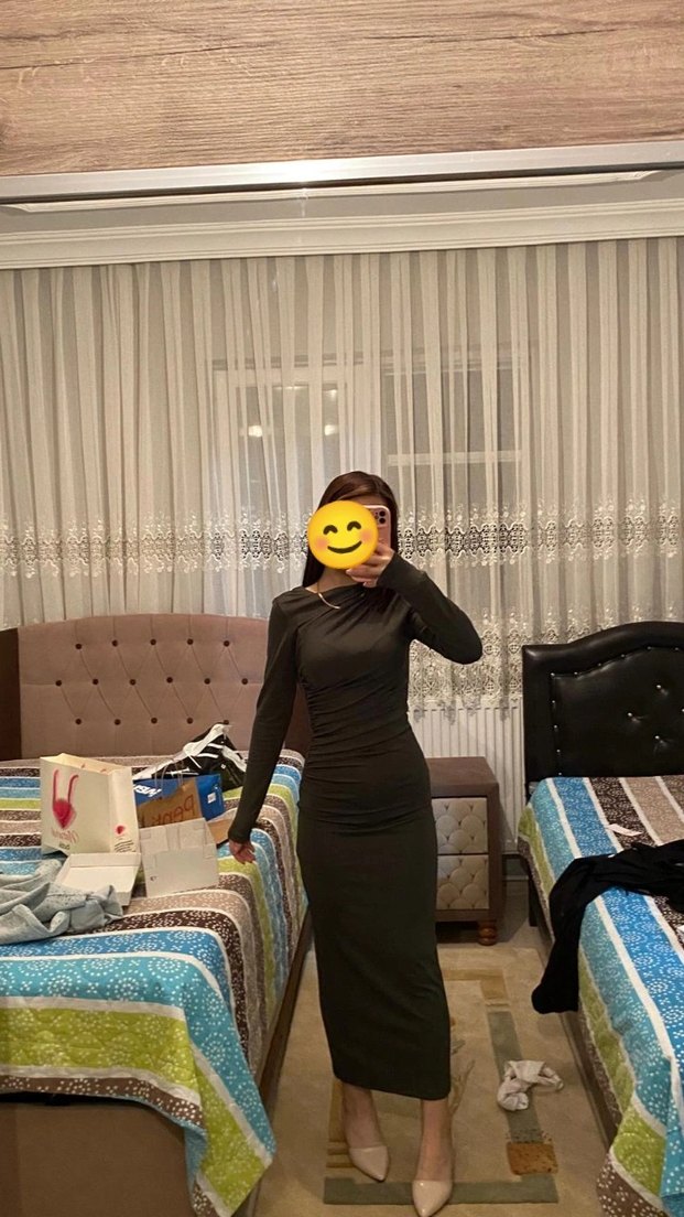 haki yesili , uzun kollu, yüksek yakalı ve vücuda oturan bu uzun elbise, yumuşak sentetik kumaştan yapılmıştır. Desensiz tasarımı avant-garde goth stilini yansıtır, parti için şık bir tercihtir.