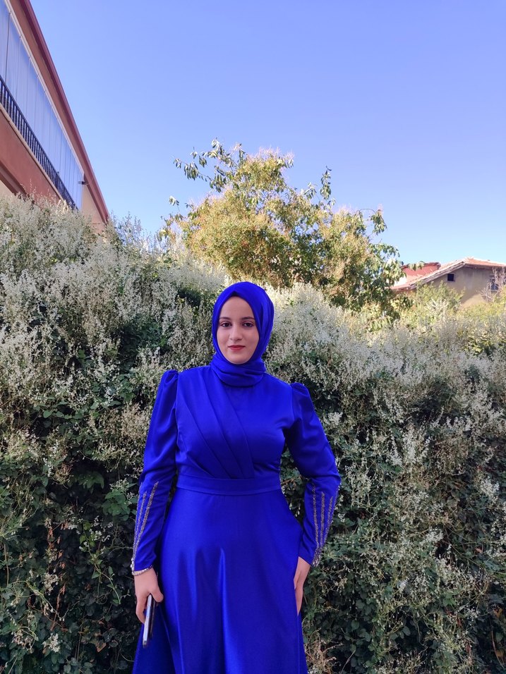 Uzun Kollu, Yüksek Yakalı Mavi Tesettür Elbise