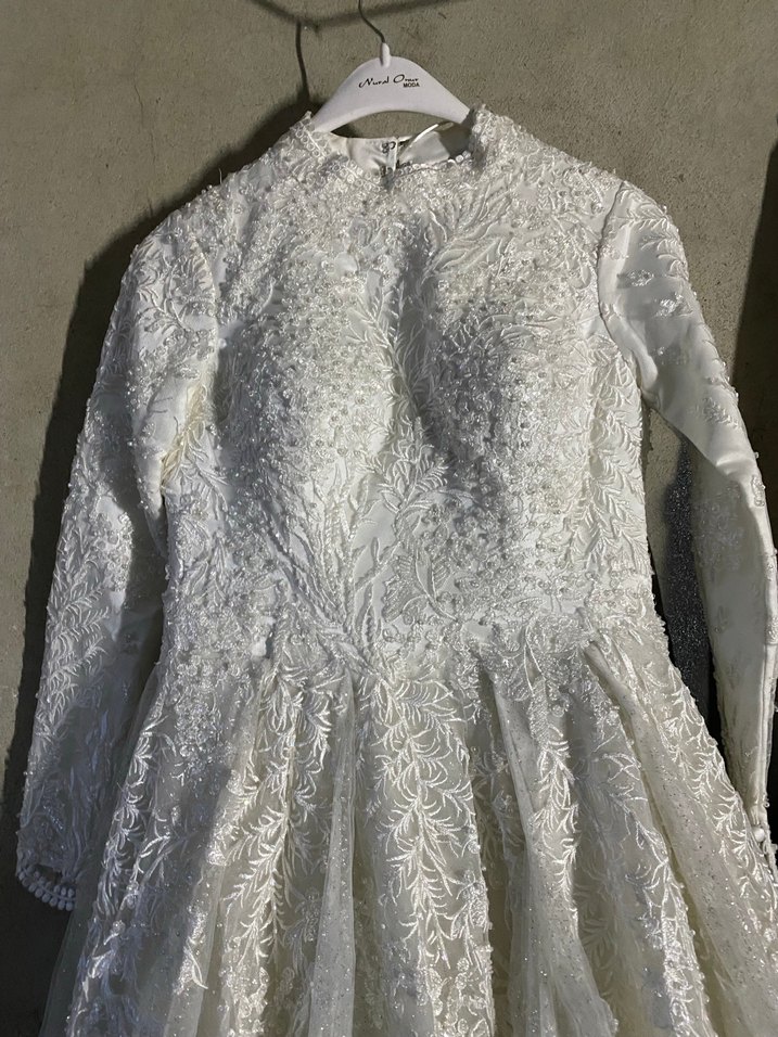Uzun Kollu Yüksek Yakalı Prenses Gelinlik
