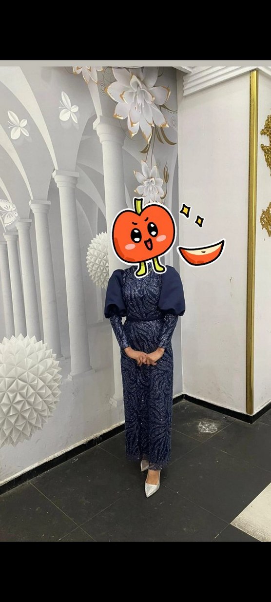 Uzun kollu, yüksek yakalı turuncu baskılı elbise. Drapeli detaylarıyla düzenli kesim, mütevazı ve avangart parti stili sunar.