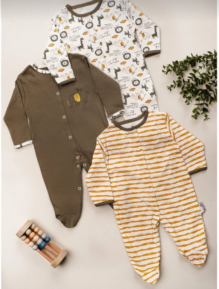 Uzun kollu, bisiklet yakalı bebek tulumu, zebra desenli ve düğmeli. Yumuşak sentetik kumaştan, kahverengi ve gri tonlarında, sokak stili için uygun.