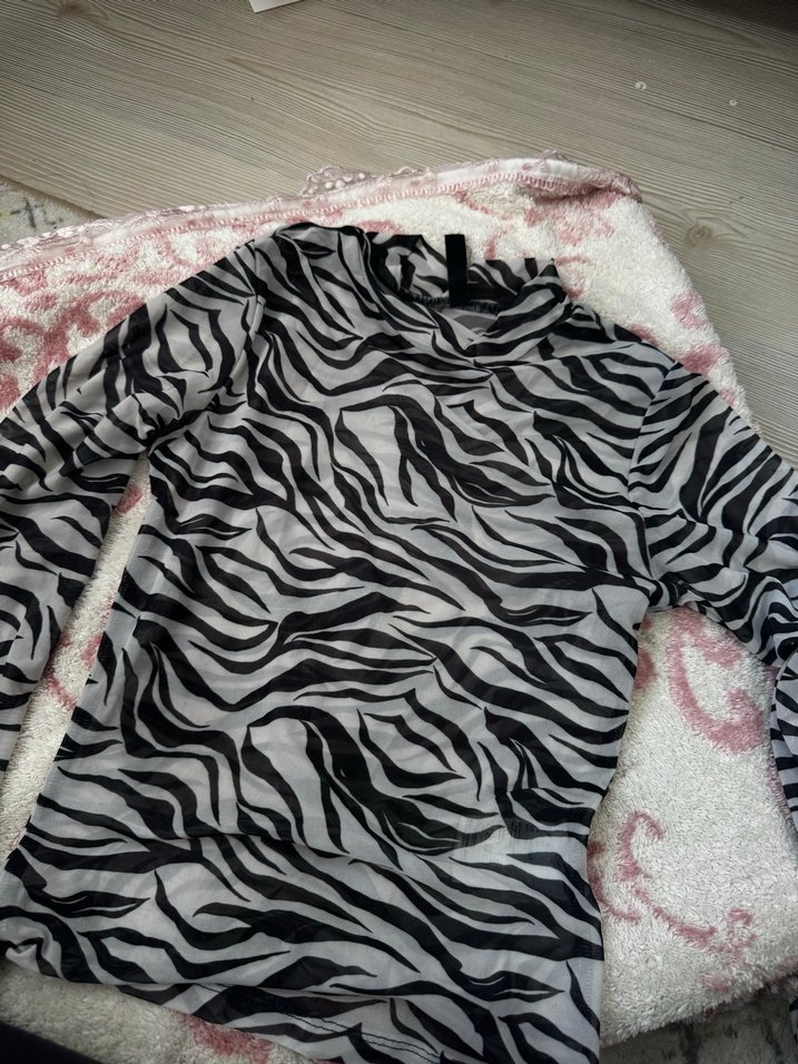 Uzun Kollu Zebra Desenli Boğazlı Bluz transparan