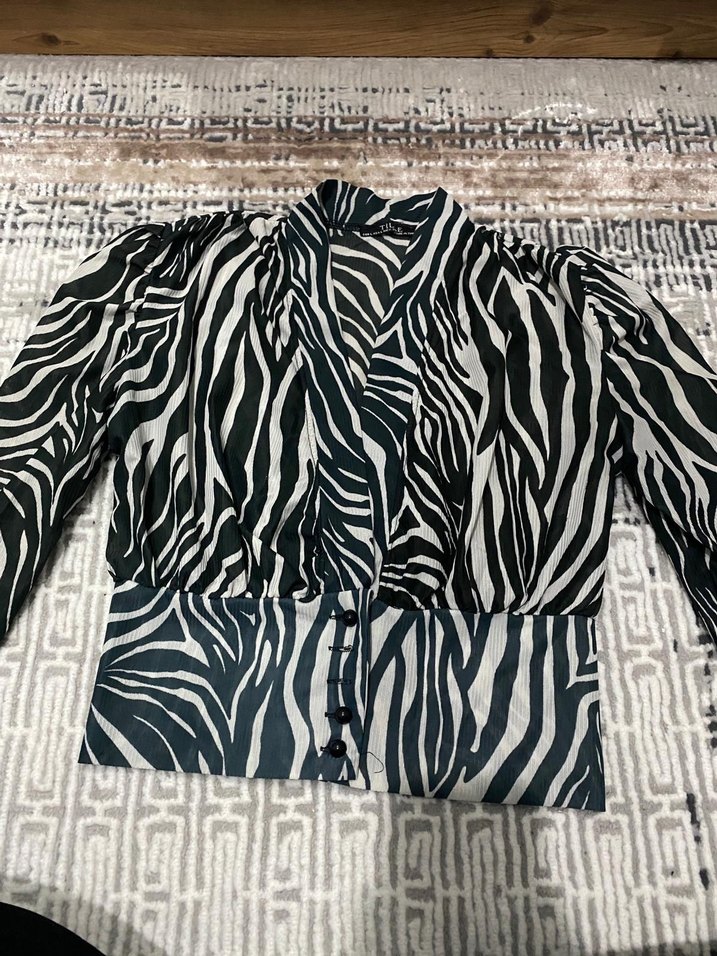 Uzun Kollu Zebra Desenli Kadın Bluz