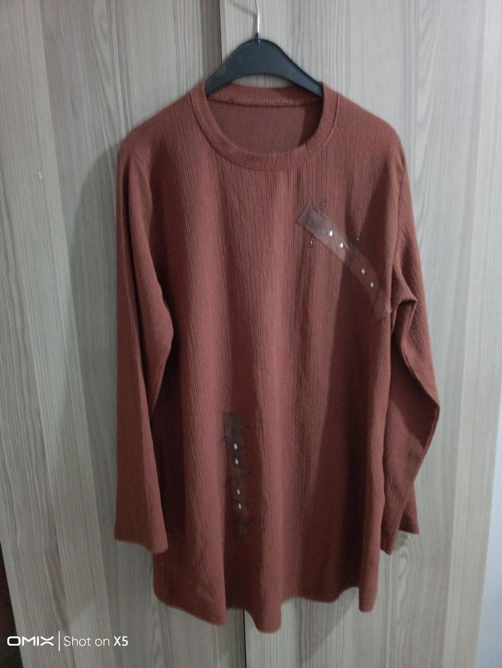 Kahverengi kumaştan, uzun kollu, yuvarlak yaka ve midi boyda, salaş kesim bir tuniktir. Desensiz sade tasarımı günlük sokak stiline uygundur. ✨