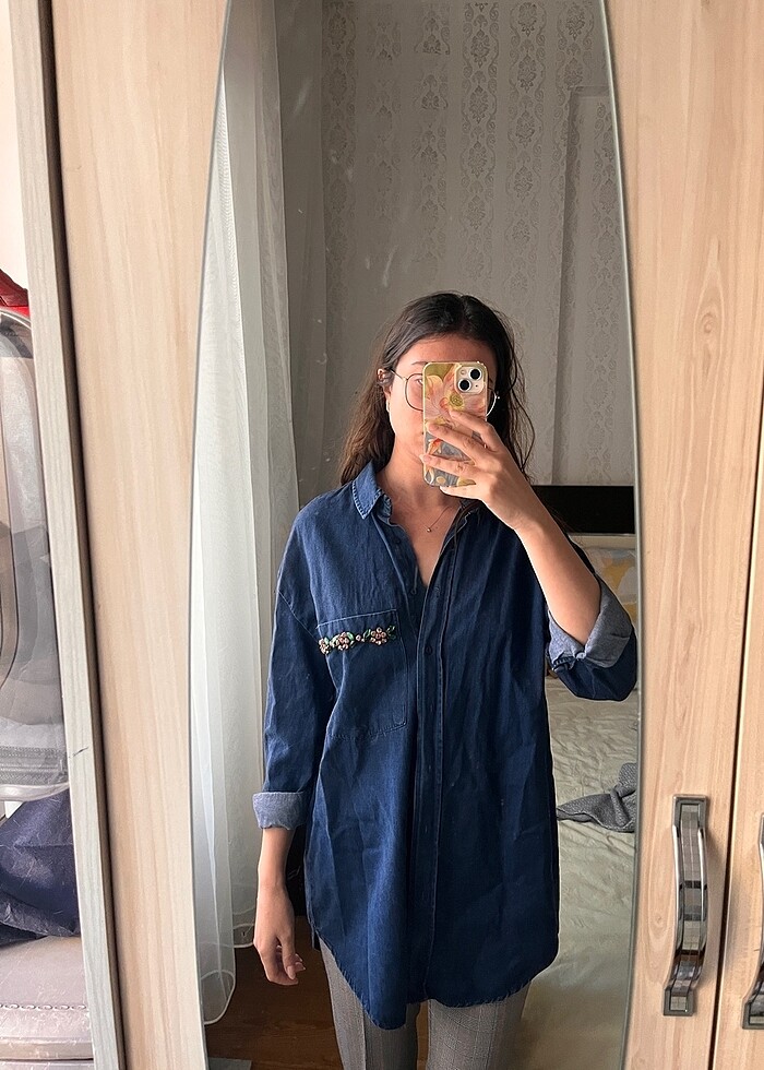 Uzun kot gömlek taş detaylı