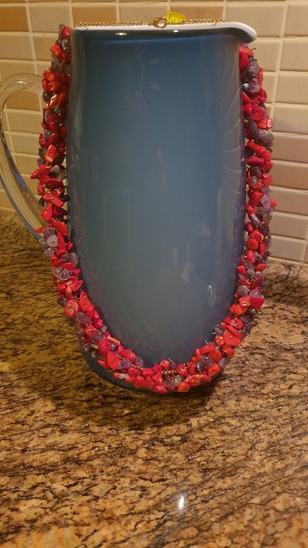 Uzun, koyu kırmızı boncuklardan oluşan, bağlama desenli rahat bir kolye, bohem ve retro tarzlar için uygun. Doğal taşlar ametist ve mercan.