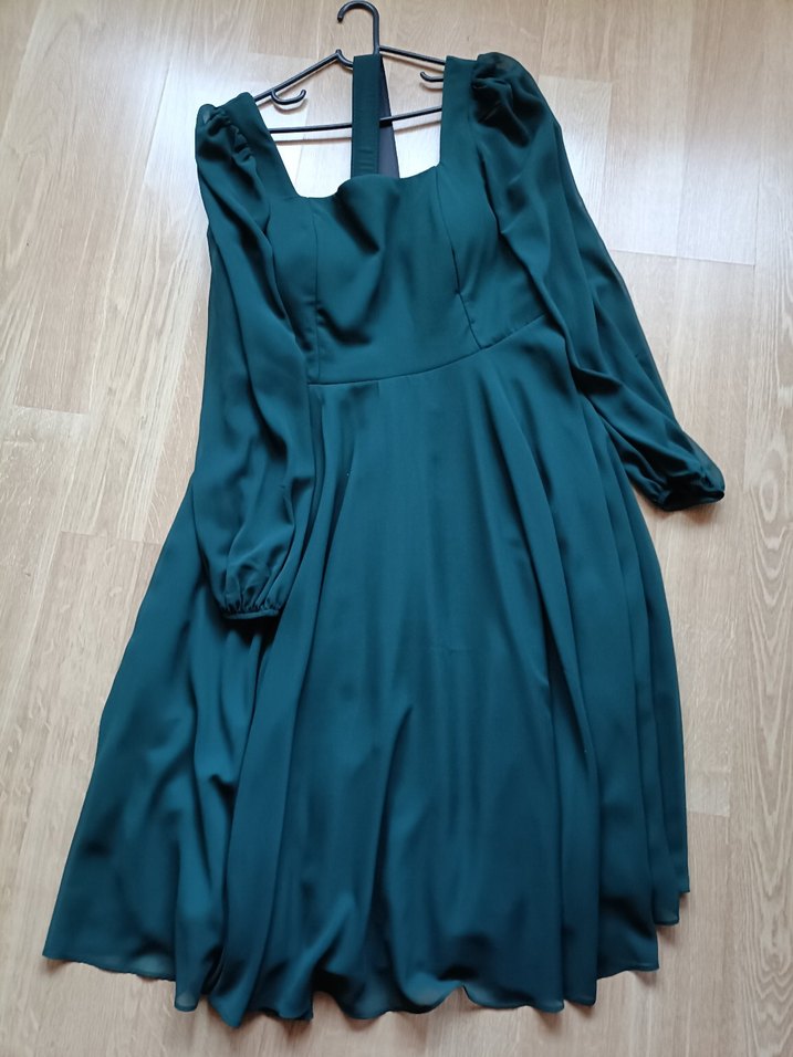 Uzun Koyu Yeşil Saten Kadın Elbise