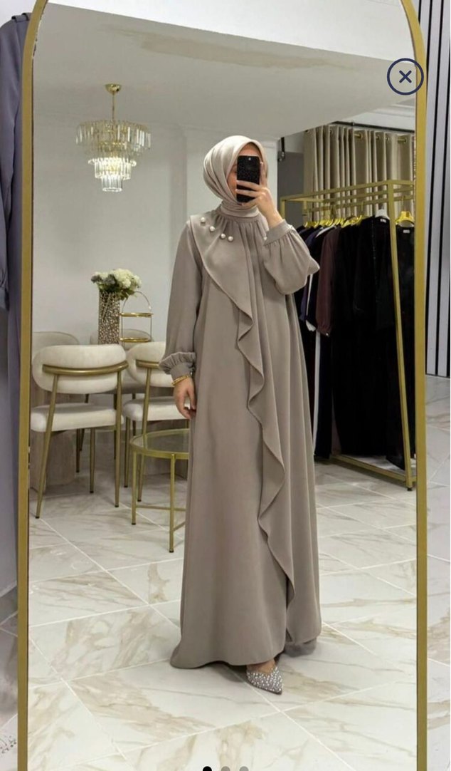 Oscar krep kumaştır.Yakasi krem inci detaylidir.temiz ve deformesi yoktur. 1 beden 38-42 beden aralığındadir.Tam bir özel gün elbisesidir.