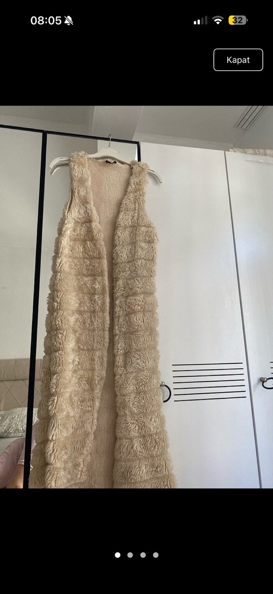 Uzun Kürklü Bej Kadın Yelek marka temsilş