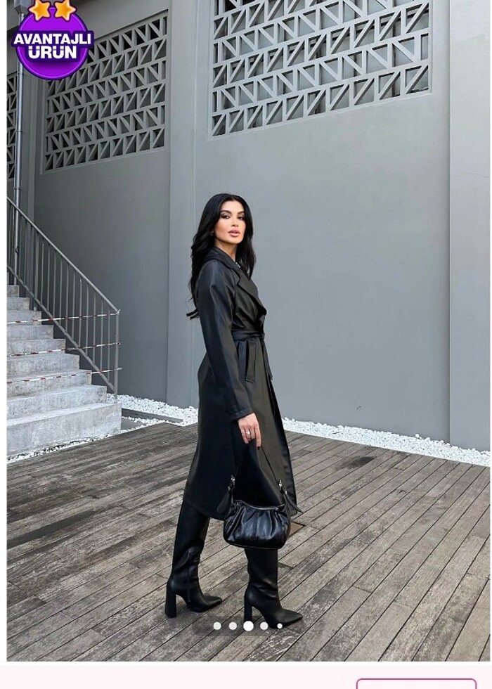 Uzun siyah deri trençkot 36 beden hiç giyilmedi