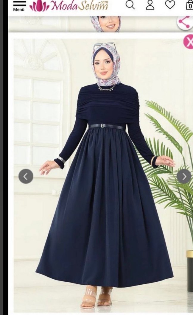 Uzun kollu, drapeli üst kısmı ve bol kesimi olan lacivert elbise. Etnik desenli, suni kumaştan günlük kullanıma uygundur.