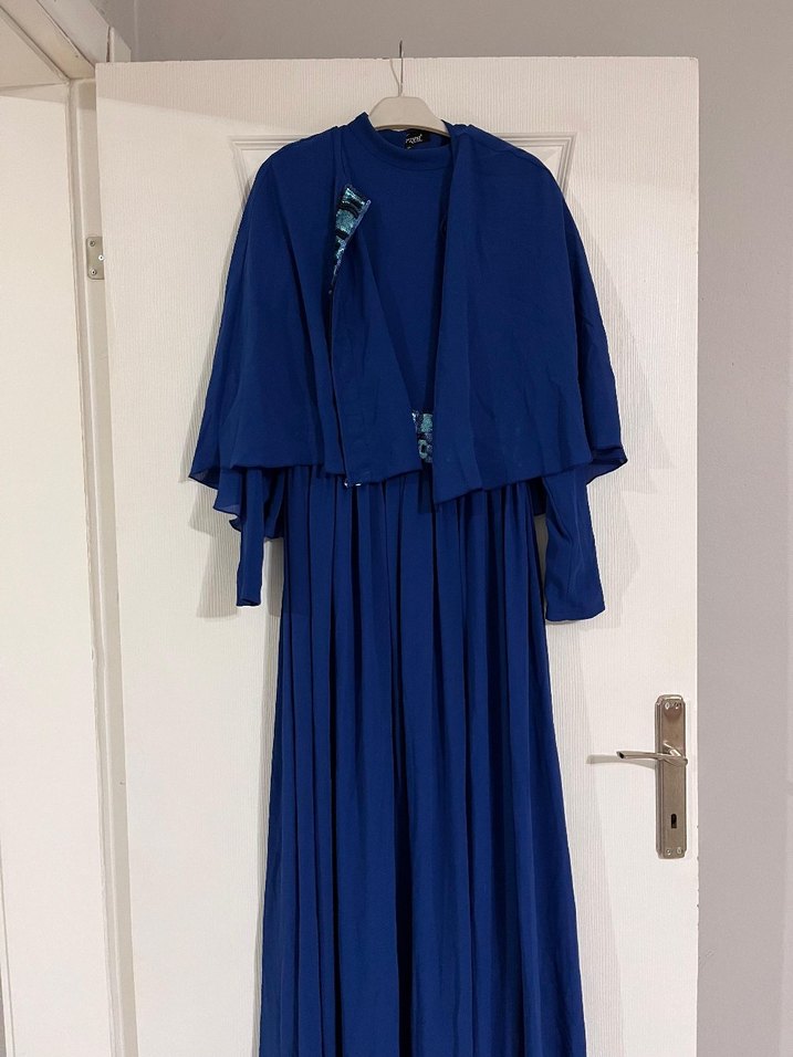 Uzun Lacivert Drapeli Kadın Elbise