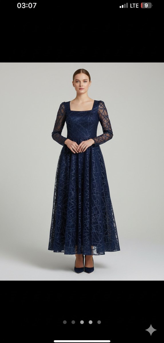Uzun lacivert elbise, kayık yaka ve drapeli tasarıma sahip, ince askılı kolludur. Parlak kumaşıyla klasik zarafete modern dokunuş katar, düğünler için uygundur. ✨ bir kez söz de giyildi kolları astarlıdır. İç görğnmüyor
