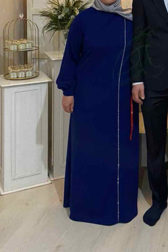 Uzun Lacivert Drapeli Kadın Elbisesi