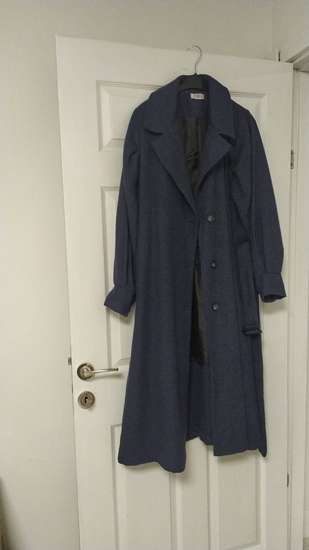 Uzun lacivert kaban, 3 düğmeli kapama ve klasik yaka ile şık bir görünüm sunar. ️hiç kullanilmadi,1 kere denedim,çok koyu lacivert değil,çok kalın değil,ölçü isteyene veririm,marka temsili