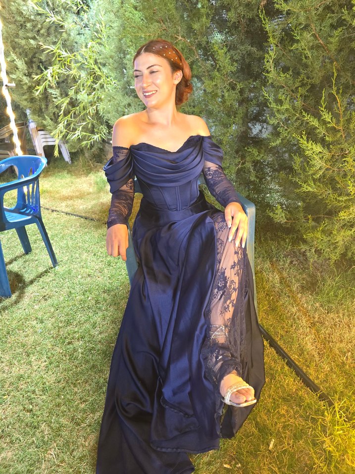 Lacivert uzun abiye elbise, 38 beden sadece 1 defa giydim 0 ayarinda