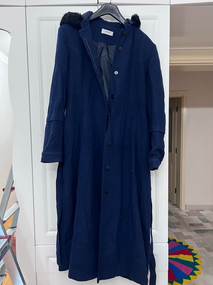 Çok iyi durumda hurçta olduğu için kırışmış olmadiği için satitorum …Uzun lacivert kadın kaban, düğmeli ön ve kesik yakaya sahip. Uzun kollu, rahat kesim, yumuşak ve sıcak kumaştan, sokak modasına uygun. TEKLİF DEĞERLENDİRilir