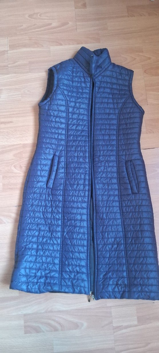 Bu uzun lacivert kadın yelek fermuarlı olup, kesik yakalıdır. Sentetik kumaştan yapılmış, kolsuz ve düz kesimdir. Günlük kullanıma uygun, rahat normcore tarzındadır. omuz 35 ,bel 45,boy 95 cm cep.astari dikilmeli
