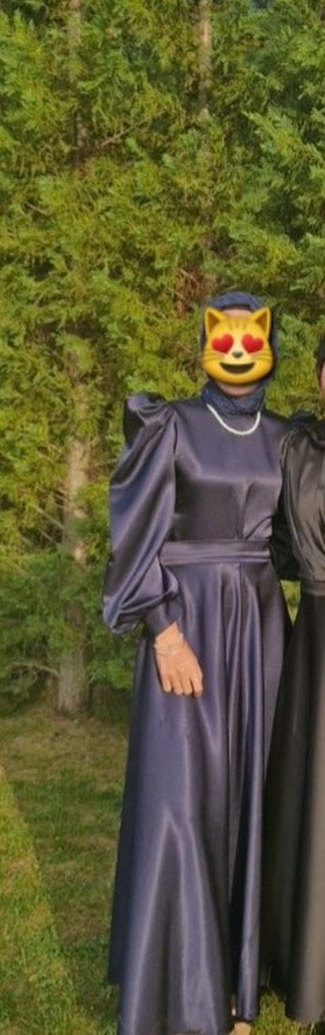 Lacivert saten abiye. 36 beden. 2 kez giyildi. kolları boğumlu beli kemerli. Astarsız.Boyum 1.58 kilom 47