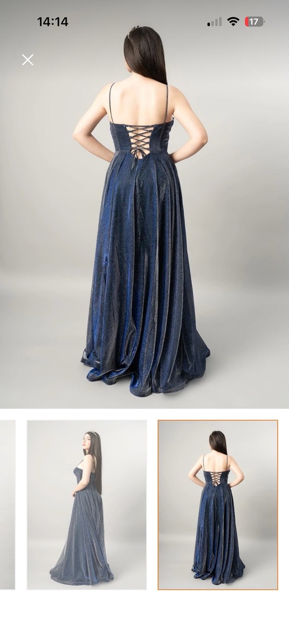 44 Beden uzun lacivert gece elbisesi, V yakalı ve ince askılıdır. Drapeli tasarımı, salaş kesimi ve parlak dokusuyla düğünler için uygundur. Sırt kısmı bağcıklıdır. Alt kısımda ufak bir delik var zaten elbisenin boyu uzun ve uçlardan çok az kestirilerek rahatça kullanılabilir, delik de yok olmuş olur.✨✨