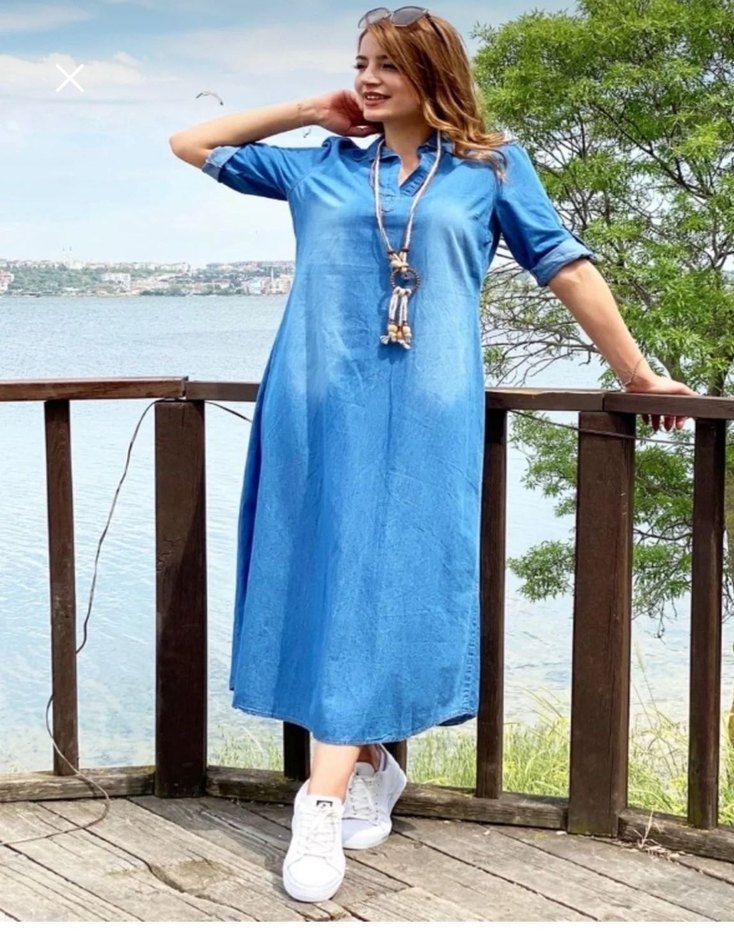 Uzun Mavi Denim Elbise
