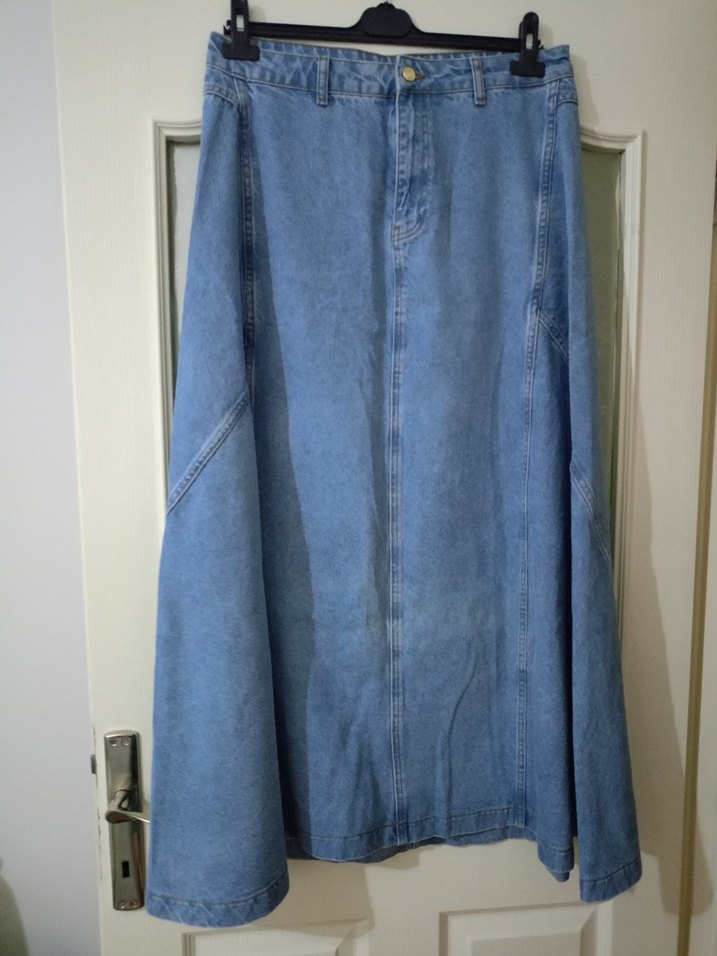 Uzun Mavi Denim Salaş Etek