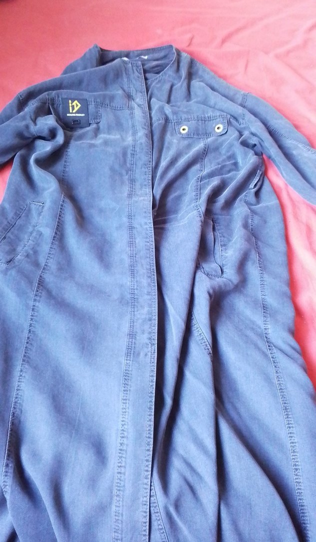 Uzun mavi renkte, drapeli, uzun kollu, yakası kesik detaylı, bol kesim hamile kabanı. Yumuşak ve sıcak kumaştan üretilmiştir, günlük kullanım için uygundur.